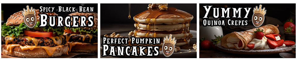 YOUTUBE THUMBNAILS • King's Quinoa channel, food images generated using Midjourney AI.